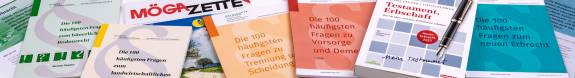 Zudem pflegen wir eine eigene Schriftenreihe „Die 100 häufigsten Fragen“, welche kurze und verständliche Antworten auf die wichtigsten Fragen eines Rechtsgebiets liefert. Bisher erschienen sind die Ausgaben Erbrecht, Bodenrecht, Pachtrecht und Vorsorge/Demenz.